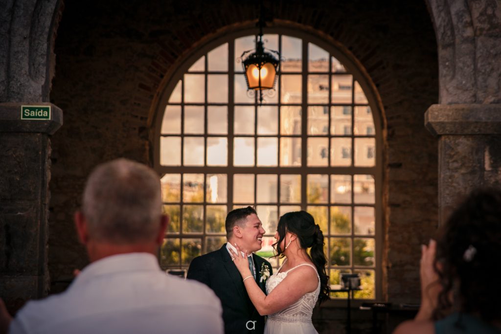 Mas vamos voltar um pouquinho… Antes do casório, eles recepcionaram seus convidados no Restaurante Ferroviário, em Lisboa. Um fim de tarde memorável, com uma vista espetacular para o Rio Tejo, muita conversa boa e aquele clima de ansiedade gostosa pelo dia seguinte.