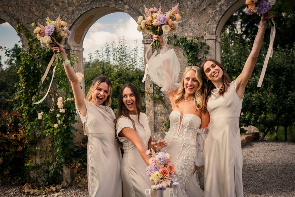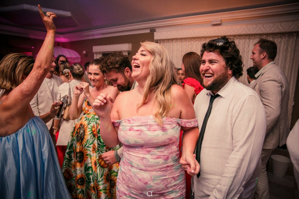 Lottie estava deslumbrante em seu vestido que realçava perfeitamente suas curvas, enquanto Luke e seus padrinhos optaram por trajes elegantes que combinavam entre si. As madrinhas também seguiram a paleta de cores, tornando a estética do casamento ainda mais harmoniosa. Cada detalhe estava impecável e contribuía para um cenário digno de cinema.