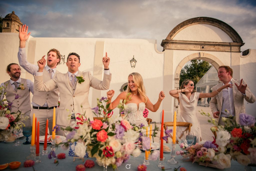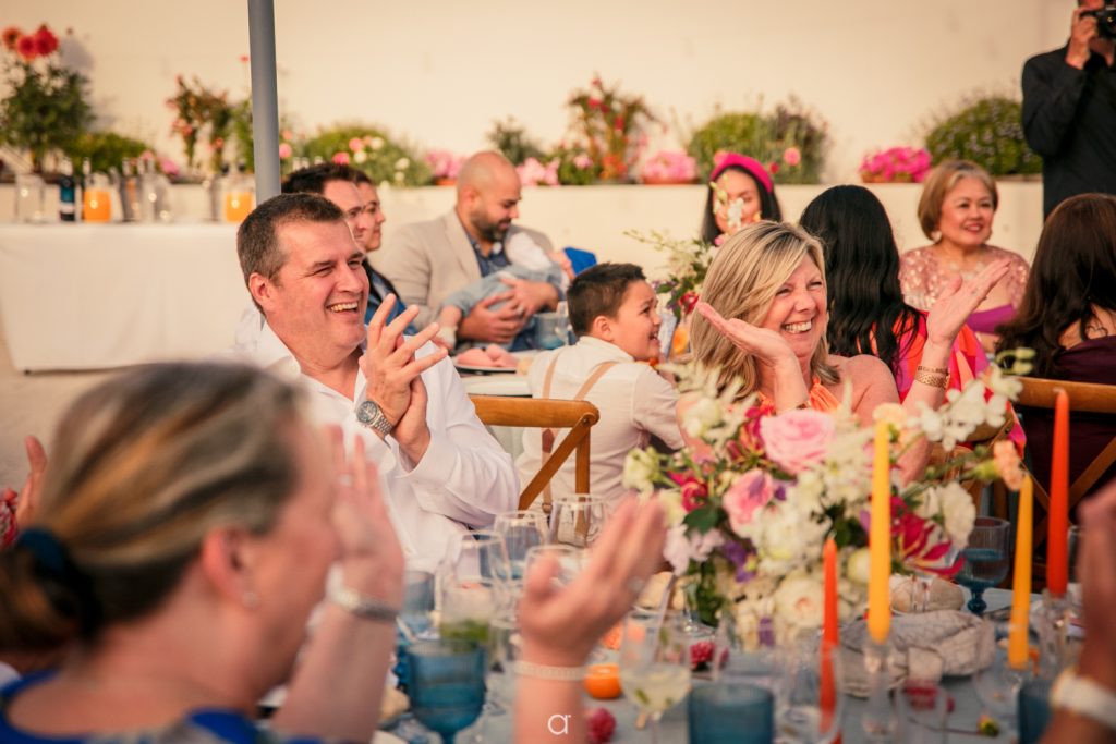Outro grande destaque desse casamento foi a incrível decoração assinada pela wedding planner Maria Luísa. Foi a minha primeira vez trabalhando com ela, e fiquei impressionado com sua simpatia, profissionalismo e talento artístico. A composição das mesas foi um verdadeiro espetáculo de cores, misturando flores exóticas e frutas de forma única e harmoniosa.